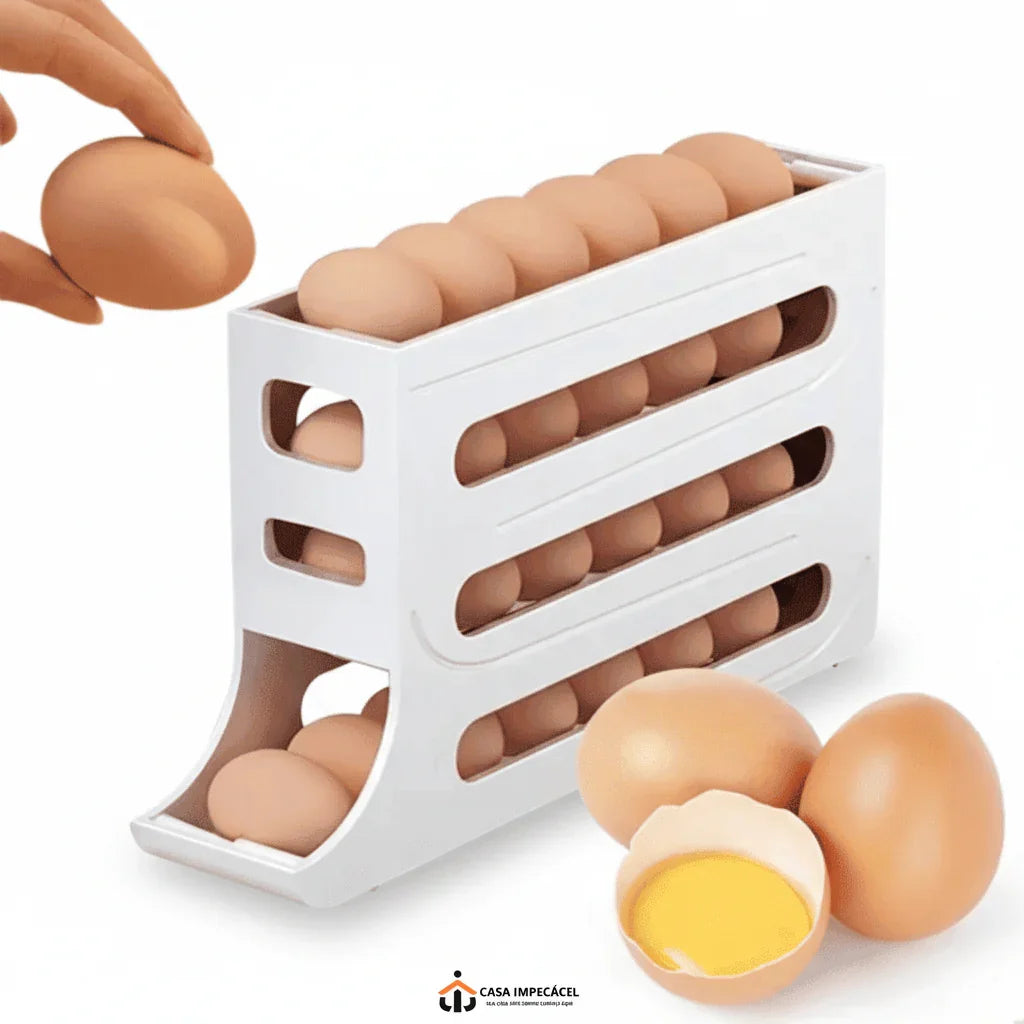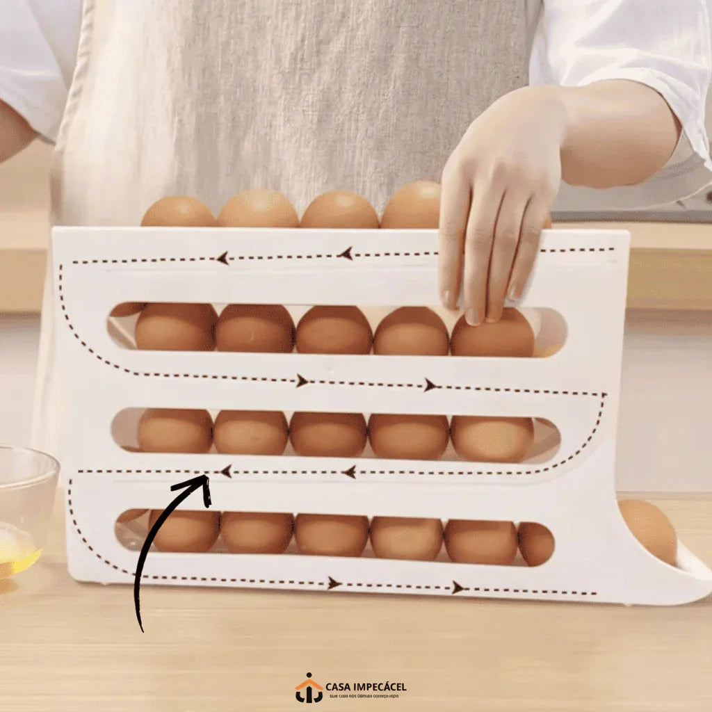 Chega de ovos soltos ou caixas que ocupam espaço demais. O Organizador Porta-Ovos com Rolagem Automática traz eficiência, praticidade e beleza para sua cozinha!